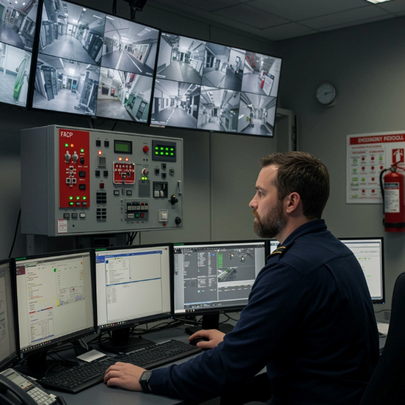 A central de combate a incêndio atua como núcleo de coordenação de sistemas de alerta e controle, centralizando informações de detectores de fumaça, calor e gás, sirenes, módulos e dispositivos de integração.