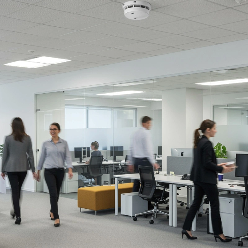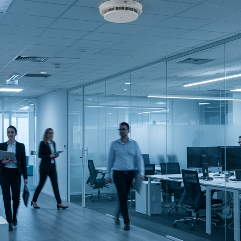 Ele identifica partículas de combustão no ar e transmite informações ao sistema de alarme, acionando sirenes e sinalizadores para alertar pessoas e equipes responsáveis.