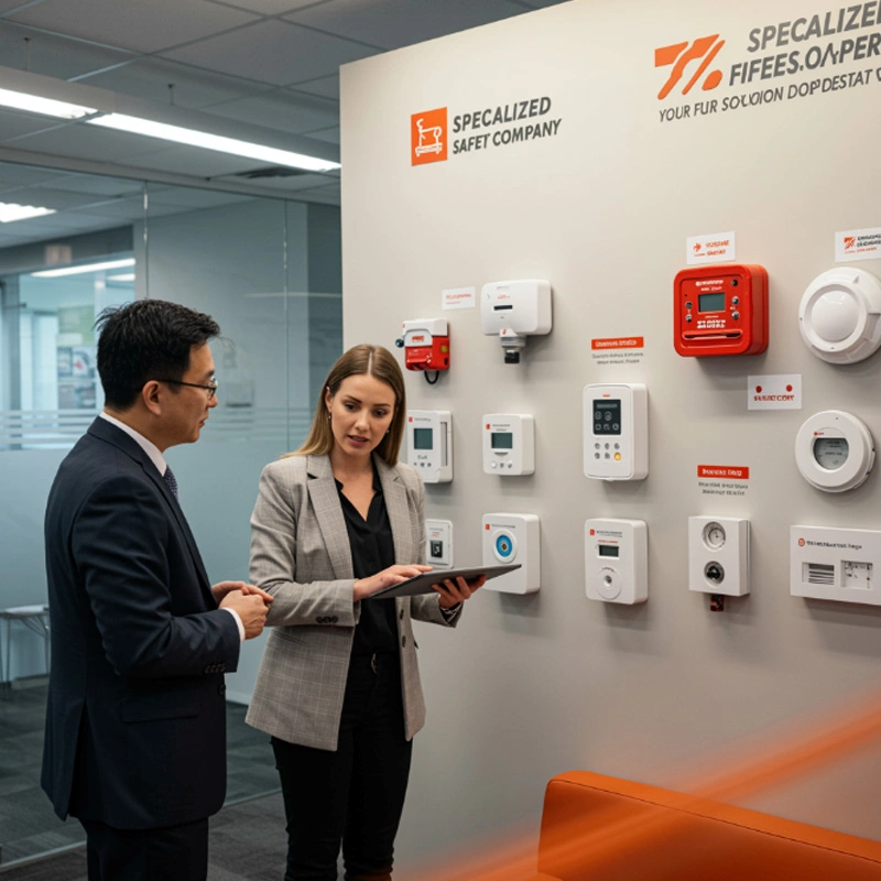 Uma empresa especializada em segurança contra incêndio oferece serviços completos de implementação de sistemas de detecção, alarme e combate.